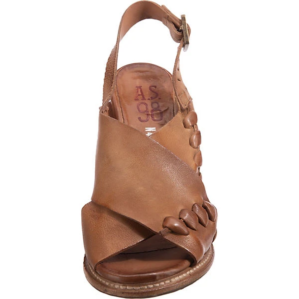 Die trendig gestalteten Sandaletten von A.S.98 unterstreichen unterschiedliche Outfits. Ein extravaganter Blickfang ist der hohe Trichterabsatz. Der Riemenverschluss ermöglicht eine individuelle Regulierung der Weite. Das Obermaterial ist aus echtem Rindsleder. Die Decksohle besteht aus natürlich atmungsaktivem Echtleder, das ein komfortables Tragegefühl unterstützt.