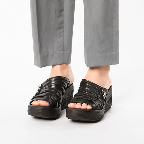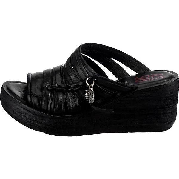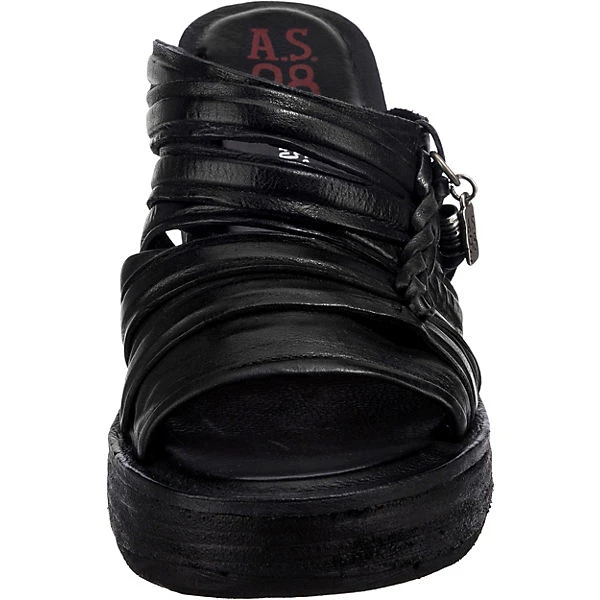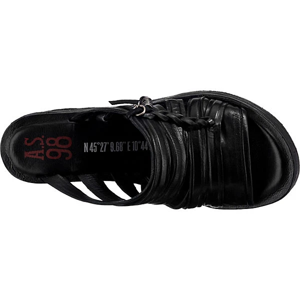 Die Sandaletten von der Marke A.S.98 setzen einen besonderen Akzent. Feinstes Rindsleder zeichnet dieses Modell aus. Der mittelhohe Keilabsatz sorgt für ein angenehmes Tragegefühl sowie einen ansprechenden Look. In die Schuhe kann ganz einfach hineingeschlüpft werden. Für ein komfortables Trageerlebnis besteht die Decksohle aus echtem Leder.