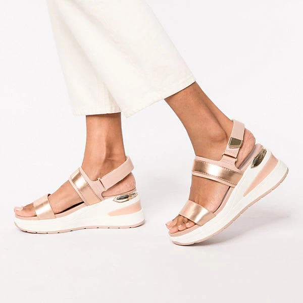 Ein ganz besonderer Blickfang sind diese Sandaletten von ALDO. Das Schuhpaar kommt ohne Verschluss aus, sodass ganz einfach hineingeschlüpft werden kann. Ein stilvoller Auftritt kombiniert mit angenehmem Tragekomfort gelingt dank des mittelhohen Keilabsatzes.