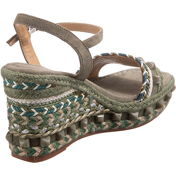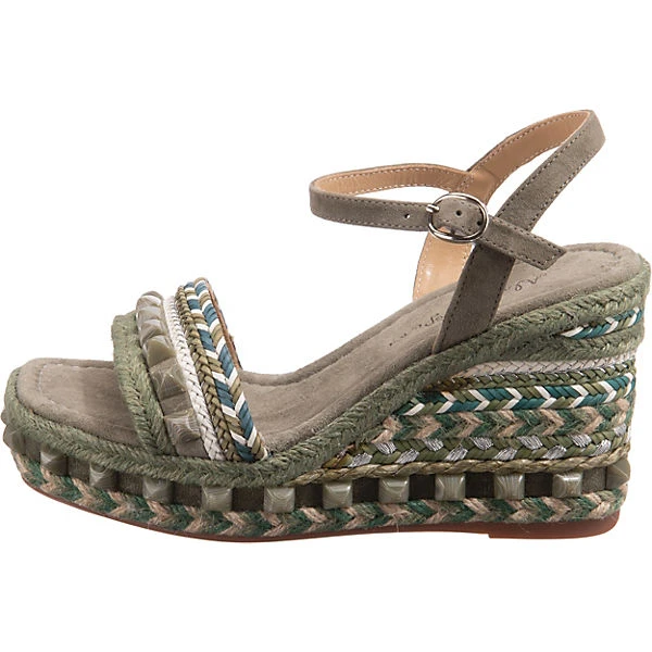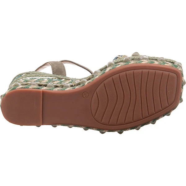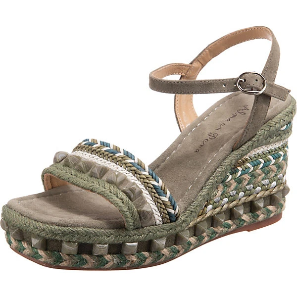 Die Keilsandaletten der Marke Alma en Pena sorgen stets für einen schicken Look. Der auffällige Keilabsatz ist ein Blickfang durch die eindrucksvolle Höhe. Für ein komfortables Tragegefühl besteht die Decksohle aus Echtleder. Die Schnalle ermöglicht eine bestmögliche Weitenregulierung. Das modisch gestaltete Obermaterial setzt sich zusammen aus einem Materialmix aus Leder und Textil.