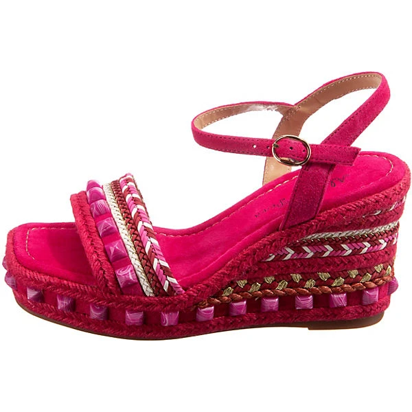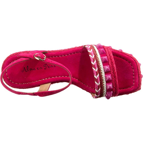 Die Keilsandaletten der Marke Alma en Pena sorgen stets für einen schicken Look. Der auffällige Keilabsatz ist ein Blickfang durch die eindrucksvolle Höhe. Für ein komfortables Tragegefühl besteht die Decksohle aus Echtleder. Die Schnalle ermöglicht eine bestmögliche Weitenregulierung. Das modisch gestaltete Obermaterial setzt sich zusammen aus einem Materialmix aus Leder und Textil.