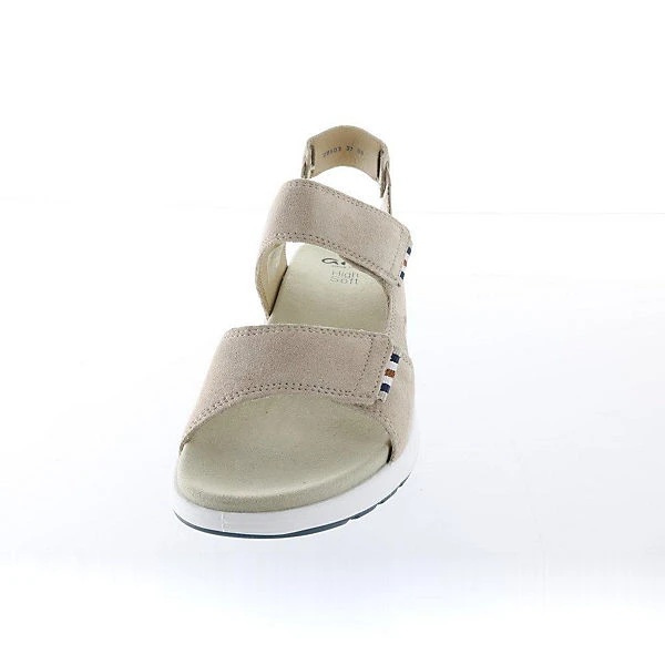 Damen Sandale ‘Panama’ von Ara. Die leichte Sandale aus super softem Veloursleder passt sich super an den Fuß an. Durch das Innenfutter aus Leder und das Fußbett aus Textilfutter bietet die Sandale ein sehr angenehmes Tragegefühl. Mit den Klettverschlüssen in den beiden Riemen lässt sich die Sandale super an den Fuß anpassen. Die leichte Sohle bietet guten Halt und dank HighSoft Technologie ist die Decksohle besonders gut gepolstert und komfortabel.