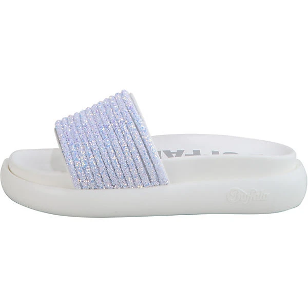 Glitzer über alles? Mit dem Roma Slide definitiv! Ganz in Weiß gehalten, ist dieses vegan gefertigte Modell überaus vielseitig und macht zu jedem sommerlichen Outfit eine gute Figur. Dank der rutschfesten Gummisohle ist dieses Modell auch ein super Begleiter für entspannte Tage am Wasser und verzückt dabei durch das funkelnde Upper in Glitzer-Optik.