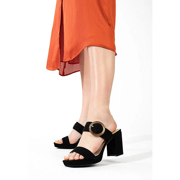 Sandalen mit quadratischem Absatz 8 cm. Sandalen in Schwarz und Kamelfarbe, die zu allem passen und für die Jahreszeit sehr bequem sind.