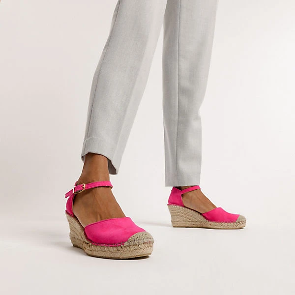 Vervollständigen unterschiedliche Outfits: Die ansprechend gestalteten Keilsandaletten von der Marke Fred de la Bretonière. Für ein komfortables Trageerlebnis besteht das Fußbett aus Echtleder. Die Schuhe punkten durch das Obermaterial aus echtem Wildleder. Der mittelhohe Keilabsatz gewährleistet ein angenehmes Tragegefühl sowie einen modischen Look. Für einen bequemen Halt sorgt die Schnalle und garantiert außerdem eine ideale Regulierung der Weite.