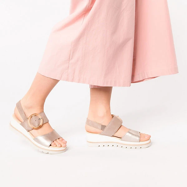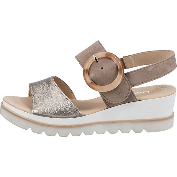aus der aktuellen Saison, Keilsandaletten Materialmix Leder beige