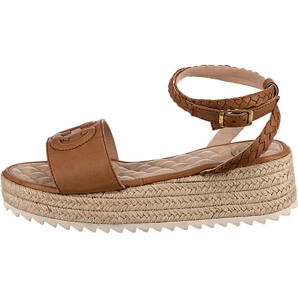Ein besonderer Hingucker sind die Sandaletten von Gerry Weber. Damit die Weite individuell angepasst werden kann, ist das Schuhpaar mit einer Schnalle ausgestattet. Das Plateau setzt einen auffälligen Akzent. Für ein angenehmeres Tragegefühl besteht das Fußbett aus Echtleder. Das Obermaterial ist aus echtem Schafsleder.