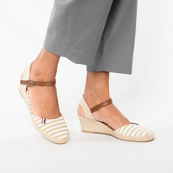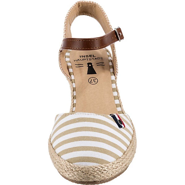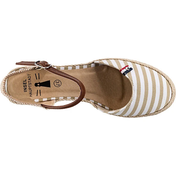 Unterstreichen verschiedene Outfits: Diese trendigen Keilsandaletten von der Marke Inselhauptstadt. Das Obermaterial besteht aus einem Materialmix aus Synthetik und Textil und ist strapazierfähig sowie ansprechend gestaltet. Durch die Schnalle kann die Weite der Schuhe den Bedürfnissen entsprechend angepasst werden. Der mittelhohe Keilabsatz sorgt für ein angenehmes Tragegefühl und einen stilsicheren Look.