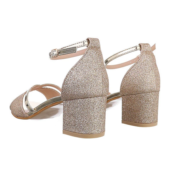 Ital-Design Sandalen & Sandaletten Schnalle, Blockabsatz, Metallisch, Riemen