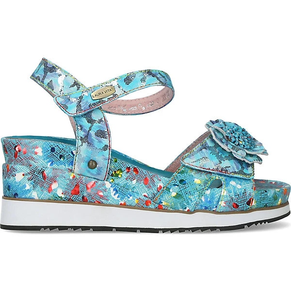 Die Keilsandaletten von Laura Vita sorgen stets für einen trendigen Style. Die Decksohle besteht aus atmungsaktivem Echtleder, das ein komfortables Trageerlebnis unterstützt. Das Obermaterial zeichnet sich durch das feine, echte Leder aus. Ein stilsicherer Auftritt gepaart mit hohem Komfort gelingt dank des mittelhohen Keilabsatzes. Der Schuh schließt durch einen Reißverschluss.