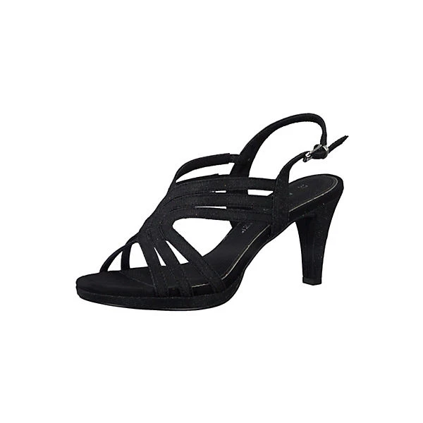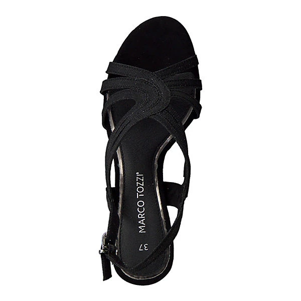 Schöne Sandalen von Marco Tozzi aus einem hochwertigem Synthetikmaterial. Innen ist der Schuh mit Kunstleder augestattet. Der Schuh hat eine normale Weite. Der Trichterabsatz hat eine Höhe von cirka 5 cm. Die Laufsohle ist aus Krepp. Über die paraktische Schließe kann der Schuh dem Fuß optimal angepasst werden. Die Schuhgröße fällt regulär aus.