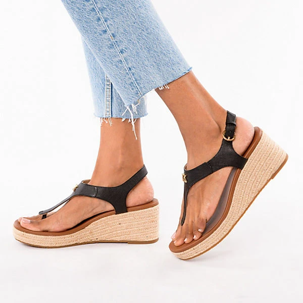 Die Sandaletten aus dem Hause MICHAEL KORS sorgen für einen spannenden Akzent. Die Gestaltung des Schuhpaares wird durch das textile Obermaterial unterstützt.