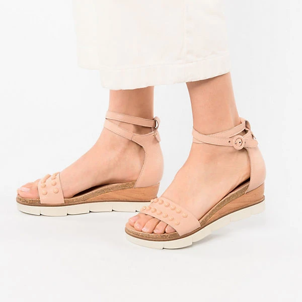 Die Keilsandaletten der Marke MJUS sorgen stets für einen schicken Look. Der Keilabsatz in dezenter Höhe bietet ein angenehmes Tragegefühl und einen stilsicheren Touch. Für ein komfortables Trageerlebnis besteht das Fußbett aus Echtleder. Der Schuh ist mit einem Reißverschluss versehen. Das Obermaterial zeichnet sich durch das feine, echte Rindsleder aus.