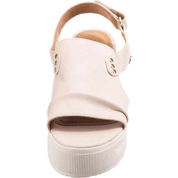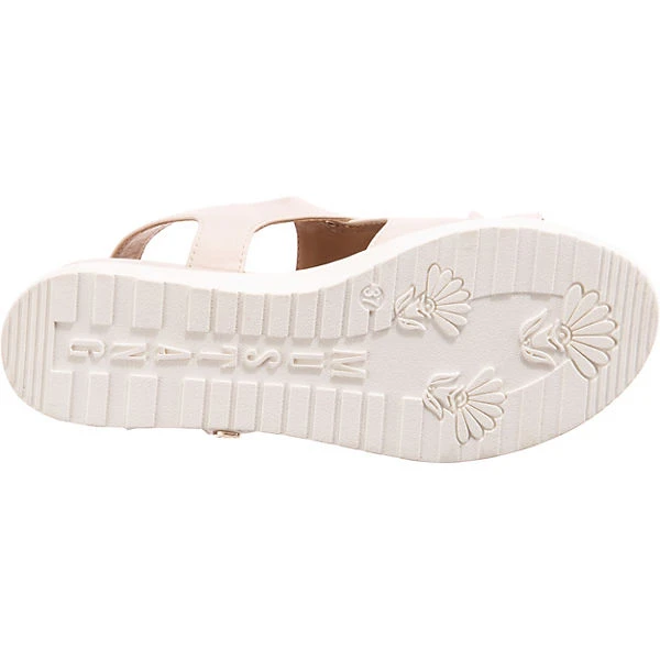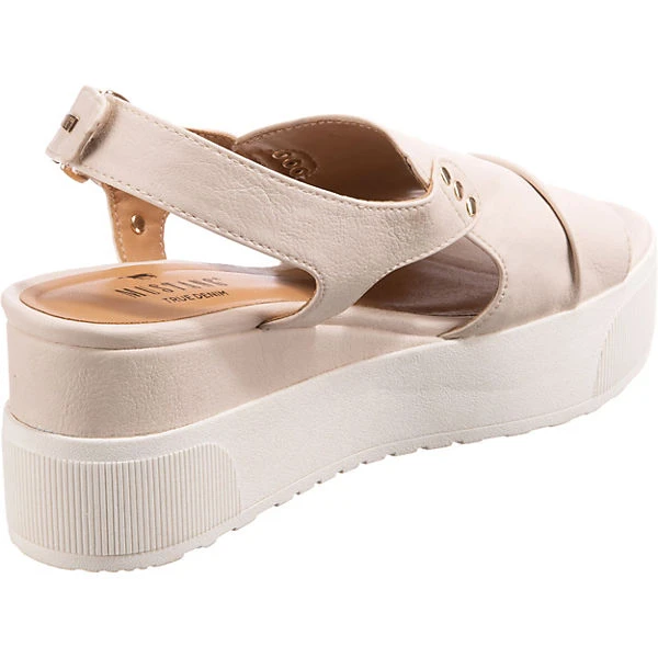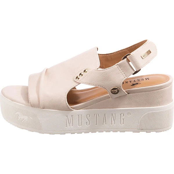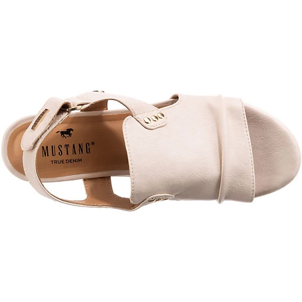 Diese stilecht gestalteten Keilsandaletten der Marke MUSTANG ergänzen unterschiedliche Outfits. Das Obermaterial dieser Schuhe besteht aus Synthetik und besticht mit der ansprechenden Aufmachung. Der Keilabsatz kombiniert einen femininen Auftritt mit hohem Komfort. Durch den Klettverschluss ist ein komfortabler Sitz möglich.