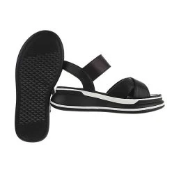 Ital-Design Plateausandaletten Hakenschnürung, Flach, Geflochten – Schwarz