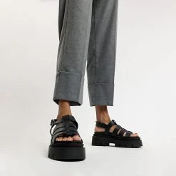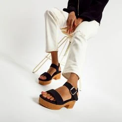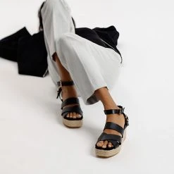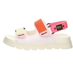 Blauer Damen Sandalen Clio 01 Sandale Plateau Bequem Freizeit Textil Uni Plateau-Sandaletten – Weiß