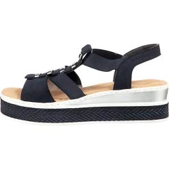 Diese blaue Remonte Sandalette aus der Lite’n Soft Kollektion überzeugt mit Coolness und hohem Tragekomfort. Die Riemchen sind mit Klettverschlüssen versehen, sodass Sie die Weite problemlos regulieren können. Das weiche, austauschbare Remonte-soft-Fußbett ist atmungsaktiv sowie Schock- und Feuchtigkeit absorbierend und wurde mit Klettverschlüssen fixiert, um es am Verrutschen zu hindern.