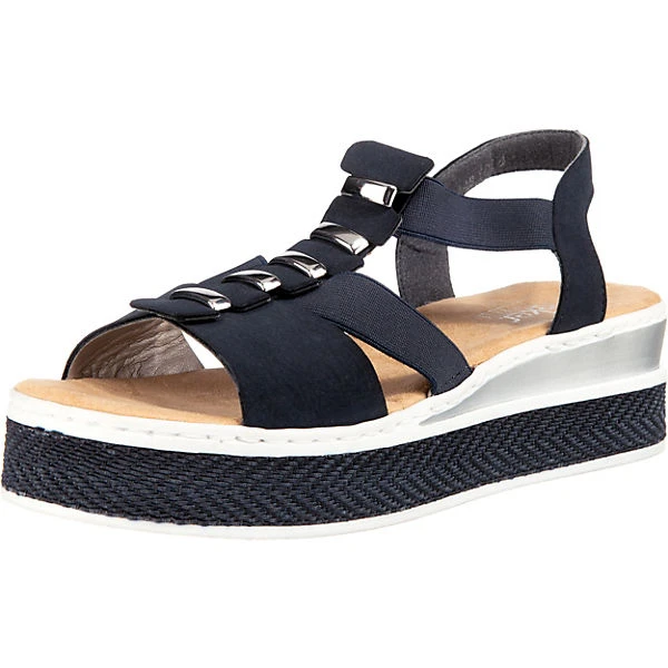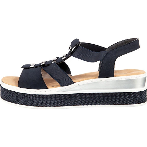 Rieker Damen Sandalen/ Riemchensandalen Blau Synthetik – komfortable Fußbettung für ganztägigen Tragekomfort – Stretcheinsatz seitlich vom Spann – elastische Riemchen beim Einstieg