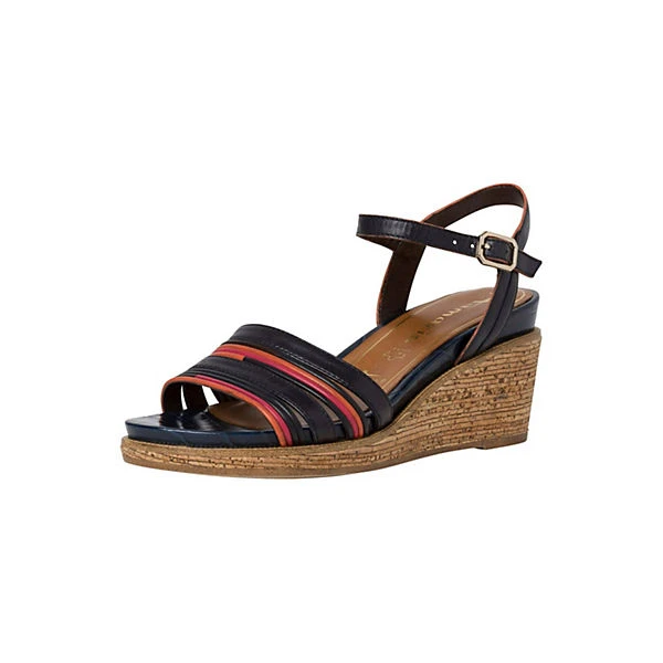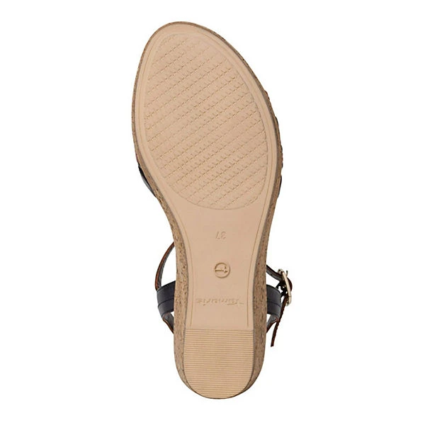 Vervollständigen Ihr Outfit: Die stilvollen Sandaletten von Tamaris. Für ein angenehmeres Trageerlebnis besteht die Decksohle aus Echtleder. Das Obermaterial zeichnet sich durch das feine, echte Leder aus. Ein stilsicherer Hingucker ist der Schuh zudem durch den hohen Keilabsatz. Durch die Schnalle kann die Weite problemlos angepasst werden.