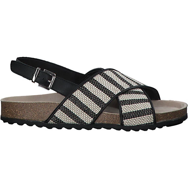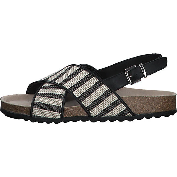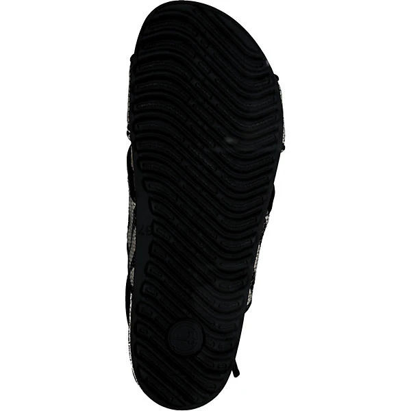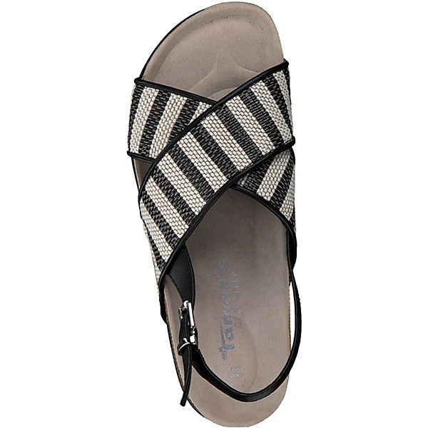 Wunderschöne Sandalette von Tamaris aus Lederimitat und Textil. Die breiten Riemen versprühen Ethno-Look Flair und bieten mit der gummierten Laufsohle die nötige Rutschfestigkeit. Mit dem verstellbaren Riemen am Knöchel lässt sich dieser Schuh bequem anpassen an den Fuß. Ob beim Stadtbummel oder an sommerlichen Tagen im Büro getragen, machst du mit diesen Schuhen nichts verkehrt.