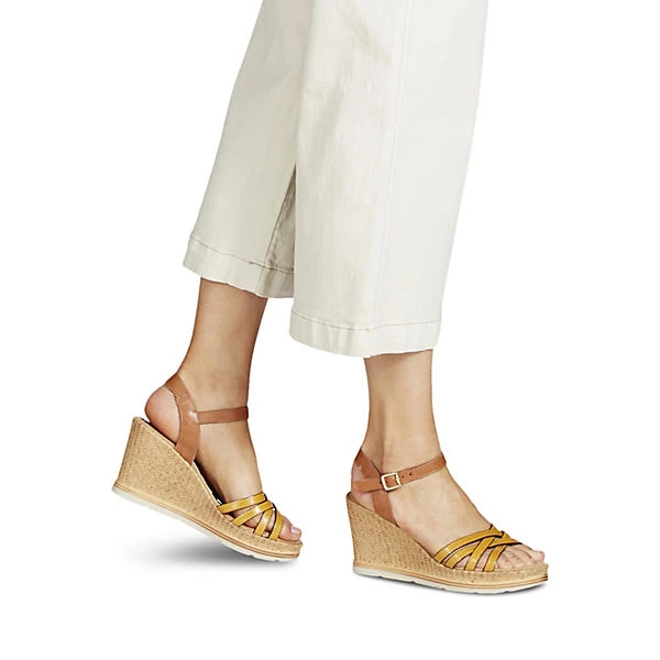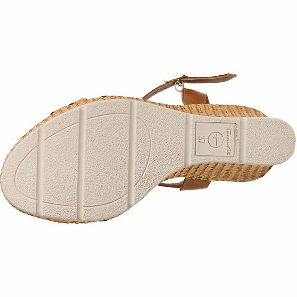 Diese moderne Tamaris Sandalette ist aus hochwertigem Leder. Der 9 cm hohe Keilabsatz sorgt für einen angenehmen Tragecomfort.