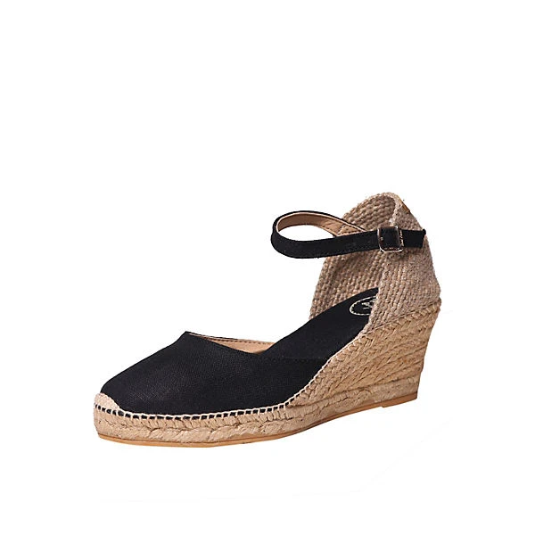 Diese trendigen Sommerschuhe von Toni Pons für Damen wurden handgefertigt in Spanien. Sie überzeugen mit Sohle und Absatz in trendiger Bast-Optik. Der schmale Knöchelriemen kann individuell verstellt werden und bietet sicheren Halt. Die Schuhe lassen sich vielseitig kombinieren und runden jedes Sommeroutfit gekonnt ab.
