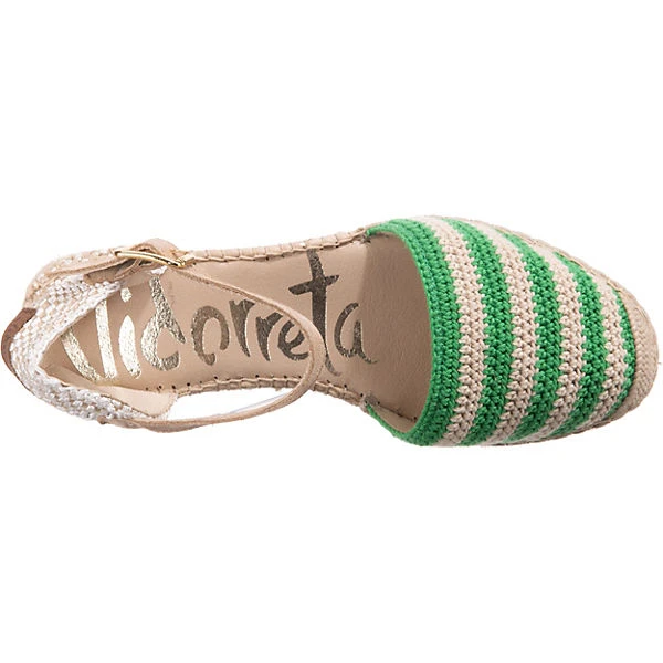 Diese stilechten Keilsandaletten aus dem Hause Vidorreta ergänzen unterschiedlichste Looks. Der Keilabsatz erzeugt eine zusätzliche modische Note. Das textile Obermaterial ist anschmiegsam und hat ein geringes Gewicht. Die Schnalle sorgt für eine individuelle Weitenregulierung.